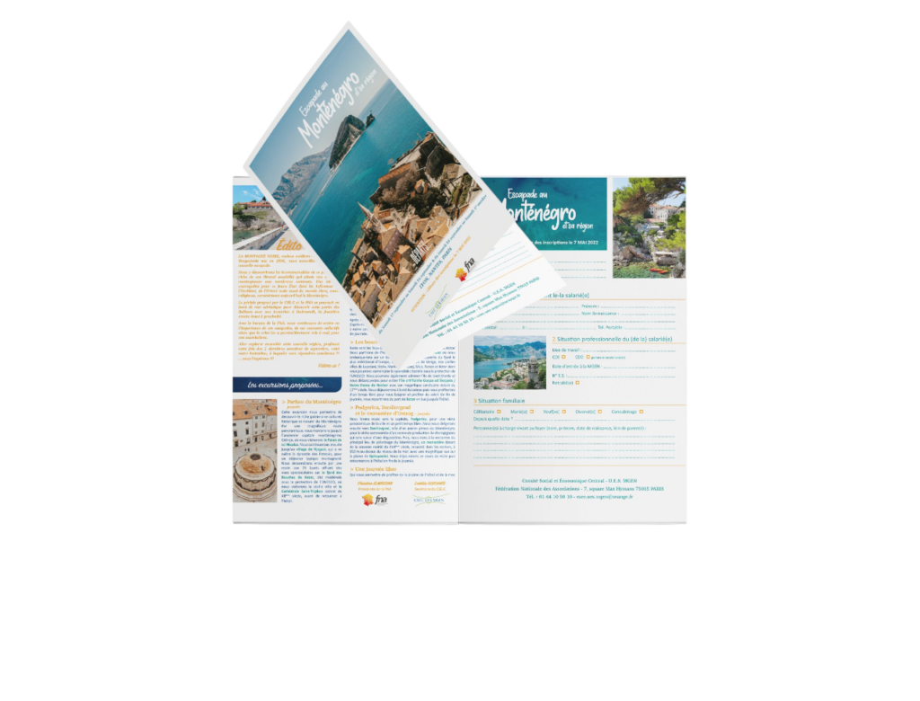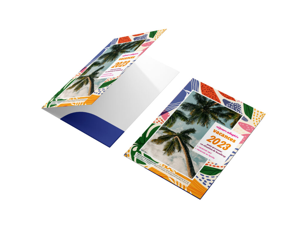Séjours adaptés. Conception et impression de pochettes à rabats destinés à des personnes à mobilité réduite désirant profiter de séjours adaptés proposés par des établissements spécialisés
