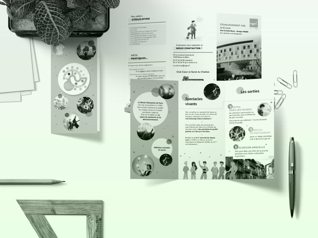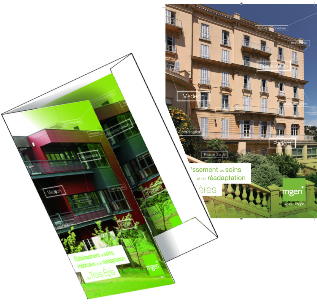 Etablissement de santé. Conception et impression de tous les livrets d’accueil des établissements de santé de MGEN. Chaque établissement dispose d’une pochette à rabat, d’un livret d’accueil personnalisé et d’un livret d’accueil en fonction des spécialités : SMR, EHPAD, HDJ, …