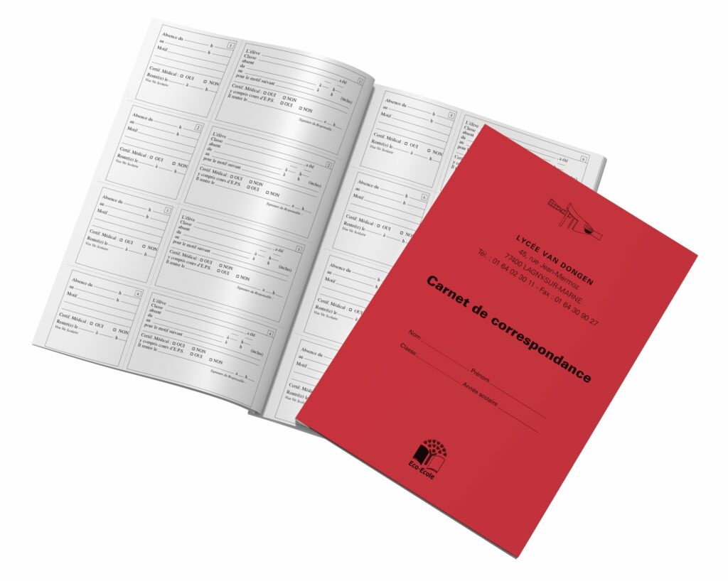 Lycée Van Dongen. Mise à jour et impression, chaque année depuis plus de 20 ans, du carnet de correspondance des élèves. Tiré à 1900 exemplaires